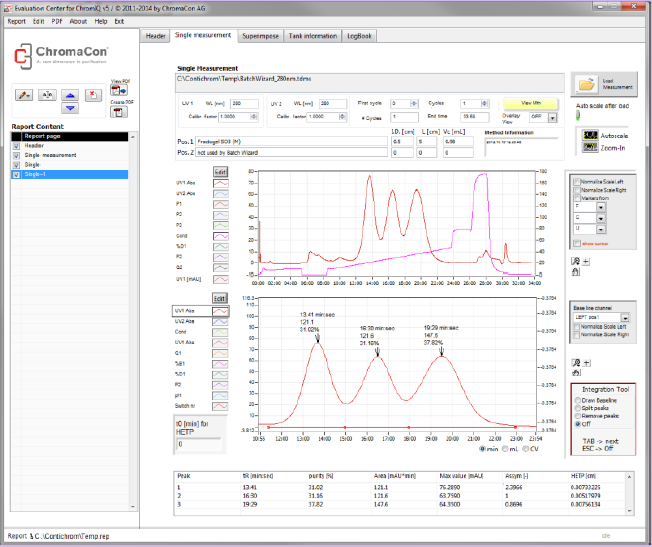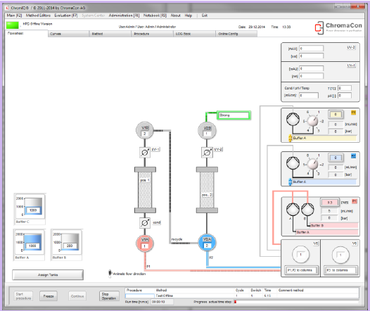 所有的Contichrom系統(tǒng)均具有完整的層析工藝運行能力,支持多種洗脫模式,ChromIQ軟件可以提供純化向導功能,以支持批生產(chǎn)工藝的設計和執(zhí)行。