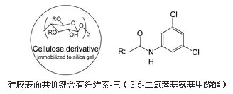 IC耐溶劑型手性柱,硅膠表面共價(jià)鍵合有纖維素-三(3,5-二氯苯基氨基甲酸酯)。溶劑使用無(wú)限制,廣泛的溶解條件,可使用任何互溶的溶劑作為流動(dòng)相、溶解樣品、手性柱再生。